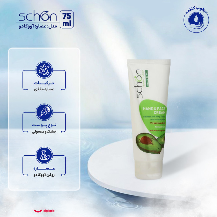 کرم مرطوب‌کننده دست و صورت شون مدل عصاره آووکادو حجم 75 میلی‌لیتر
