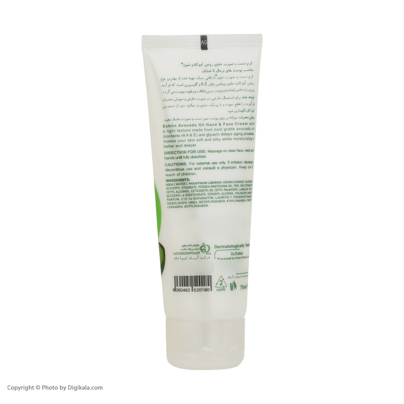 کرم مرطوب‌کننده دست و صورت شون مدل عصاره آووکادو حجم 75 میلی‌لیتر