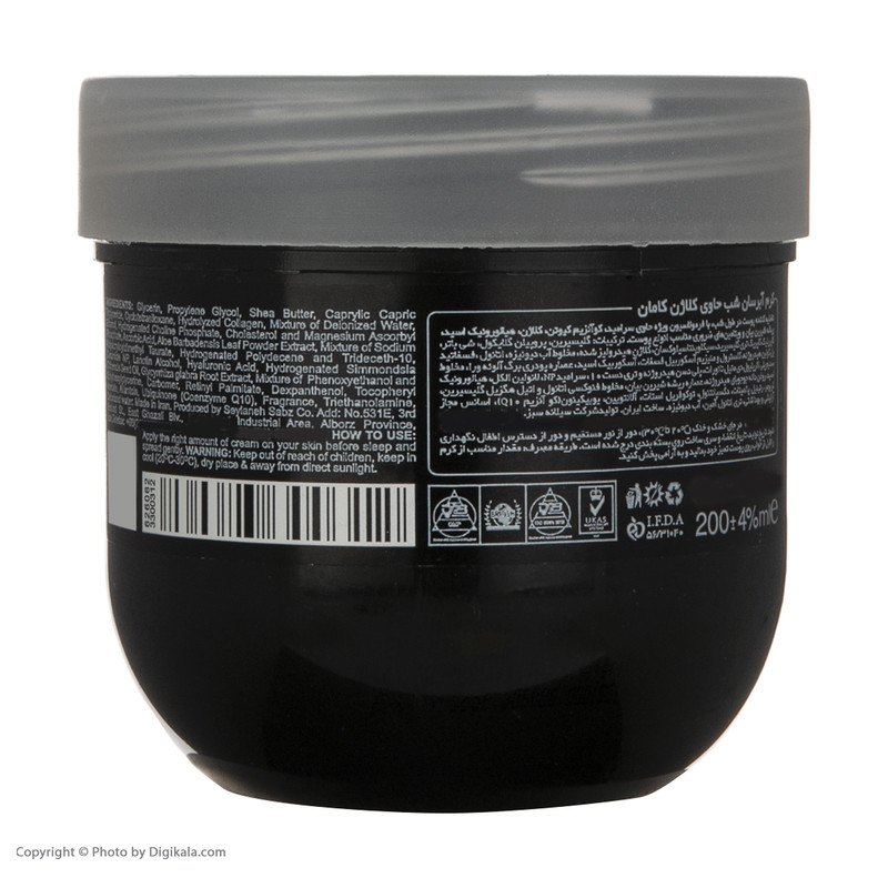 راهنمای استفاده: کرم بمب آبرسان شب کامان را بروی پوست تمیز خود بمالید.