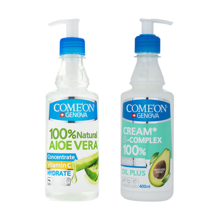 ژل آبرسان کامان مدل آلوئه ورا حجم 400 میلی لیتر به همراه کرم مرطوب کننده کامان مدل Oil pluse حجم 400 میلی لیتر