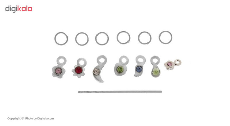 - آویز ناخن دارای 6 طرح مختلف - به همراه حلقه و سوزن - تهیه شده از فلز - مناسب برای استفاده روی ناخن