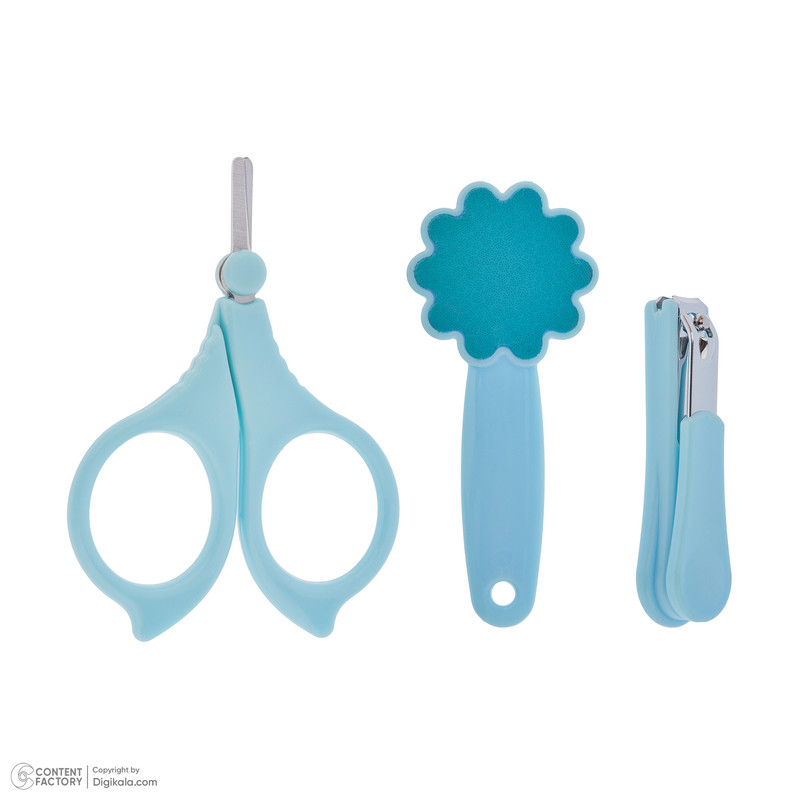 یک عدد ناخن گیر کودک به ابعاد 6x1.5x1 سانتی متر -یک عدد قیچی به ابعاد 8x5.5 سانتی متر -یک عدد سوهان به ابعاد 7x2 سانتی متر
