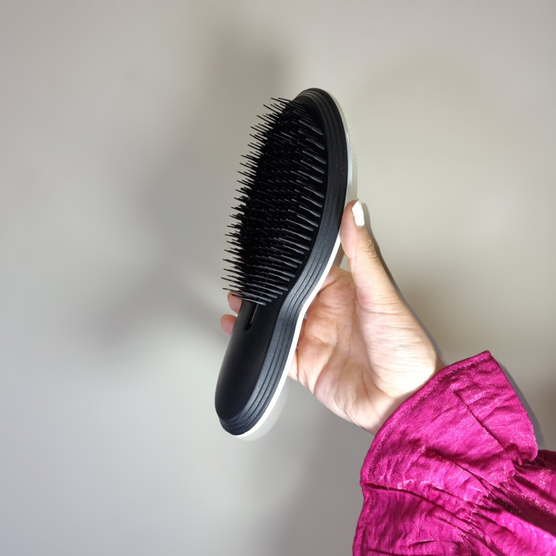 این محصول علاوه بر باز کردن گره و شانه زدن موها یک خاصیت مهم دیگر نیز دارد و آن ماساژ پوست سر است. هنگام استفاده از این محصول پوست سر ماساژ داده شده و جریان خون در آن بهبود پیدا میکند. از طرفی افزایش گردش جریان خون در ناحیه پوست سر بر روی فولیکول مو اثر گذاشته و به رشد بهتر موها کمک میکند.
