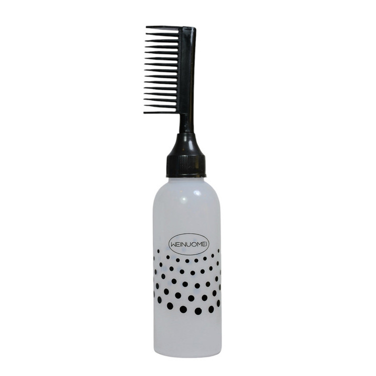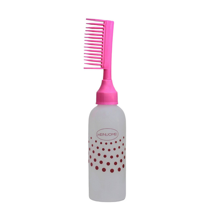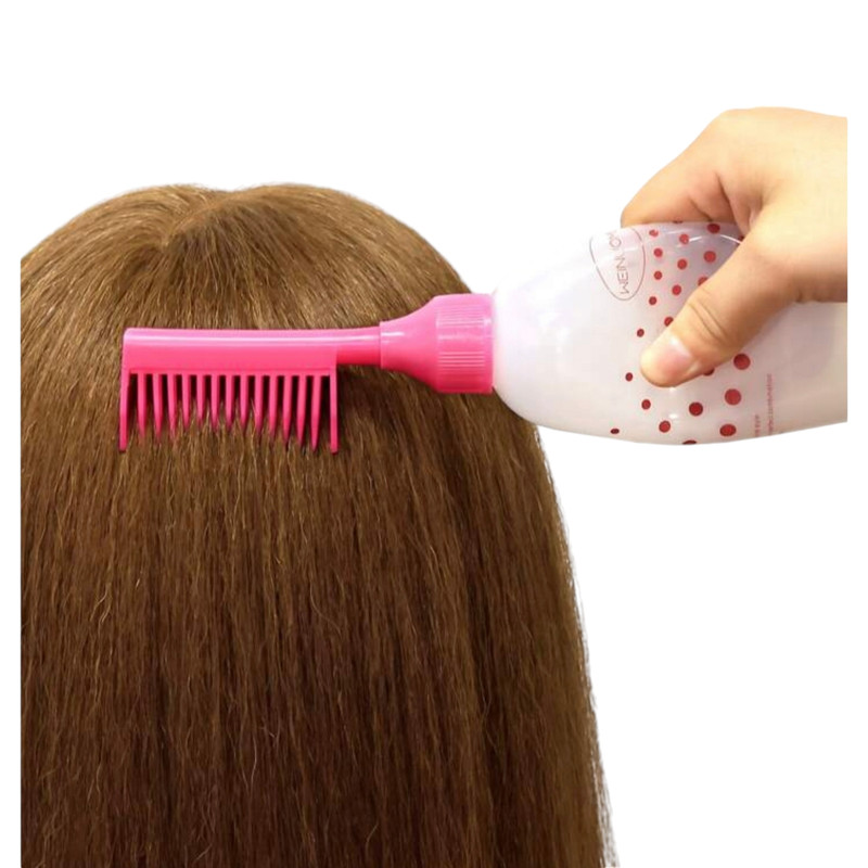 مواد مورد نظر را داخل بطری اپلیکاتور ریخته و با استفاده از قسمت شانه ای موها و پوست سر را به آرامی به مواد آغشته کنید.