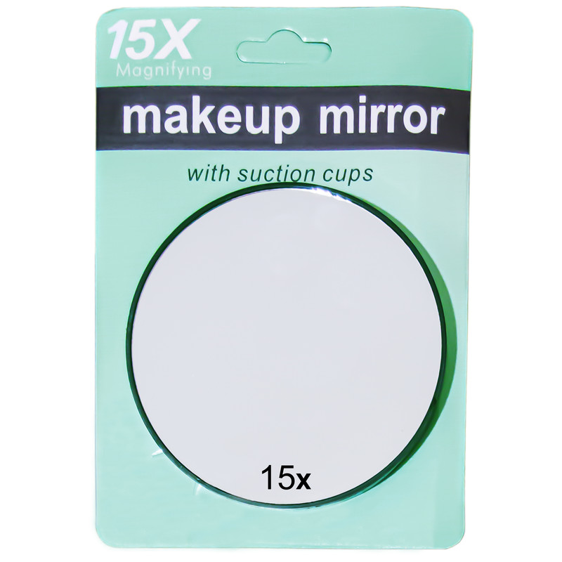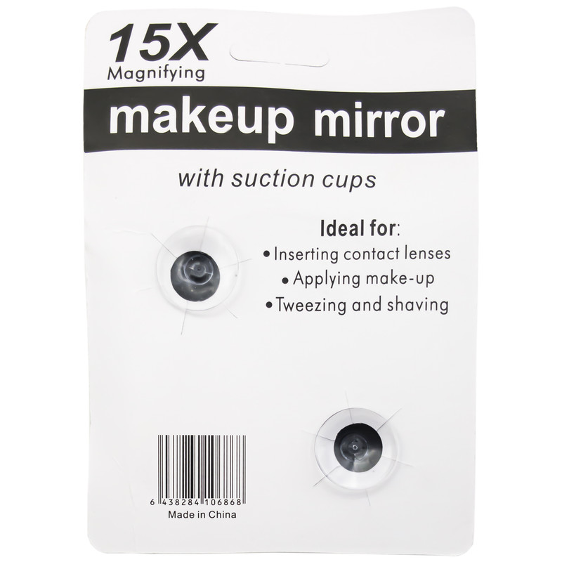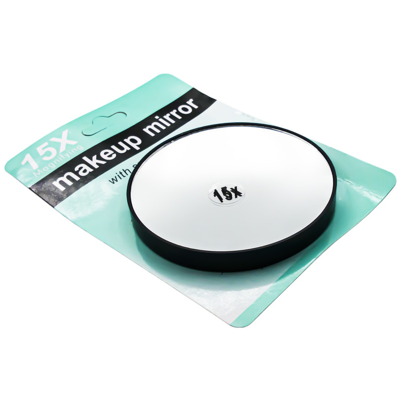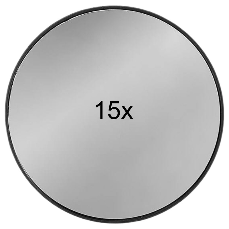 آینه بزرگنمایی مدل 15X 15 برابر بزرگنمایی اصلاح بی عیب و نقص دارای بدنهی پلاستیکی دارای دو چسبنده لاستیکی در پشت آینه